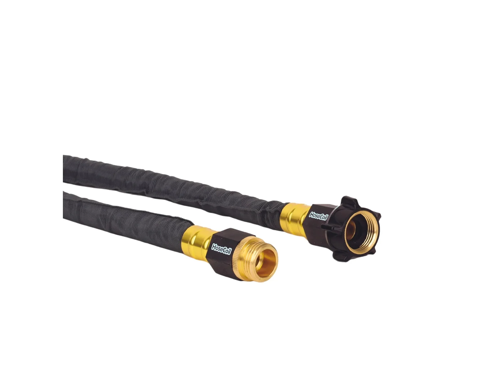 This provides superior strength and easy coiling. The machined brass threaded end fittings provide optimal tolerances and corrosion resistance for connections to spigot and nozzle. The outer cover is made with UV-resistant 1000D Tetoron fabric. This material has excellent resistance to abrasion and fading. It is mold and water resistant, dries quickly, and is designed to easily slide across surfaces without getting snagged.