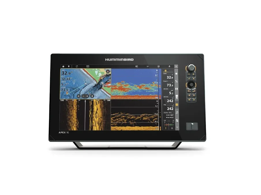 The APEX 16 MSI+ Chartplotter provides the clearest sonar imaging on the sharpest multi-function display that anglers have ever seen. See it all with a 15.6″ Full-HD touchscreen that provides a customized display of information from advanced network options like NMEA 2000®, HDMI In/Out, WiFi and Bluetooth®. Find your fishing spots faster with included LakeMaster® and CoastMaster® VX Maps. Navigate over 13,000 lakes, waterways, and coastal waters in the United States and Canada with confidence. Tools like 1-foot contours and depth and shallow water highlights help you traverse waters with certainty. Industry-leading MEGA Imaging+ and Dual Spectrum CHIRP sonar come standard, with even more performance from a dedicated sonar channel for accessory 2D CHIRP transducers up to 2kW. Add the power of the One-Boat Network™ to integrate the accuracy of Humminbird GPS charts, unrivaled boat control from Minn Kota®, and reach new depths with wireless Cannon® Optimum™ downrigger control. The APEX Series is a new kind of MFD that will take you fishing to a new level.